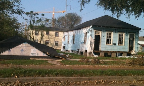 One of the houses moved out of the way of the new VA hospital in Lower Mid-City has met a similar fate as it would’ve if it had remained: destroyed not by bulldozers, but by Hurricane Isaac.